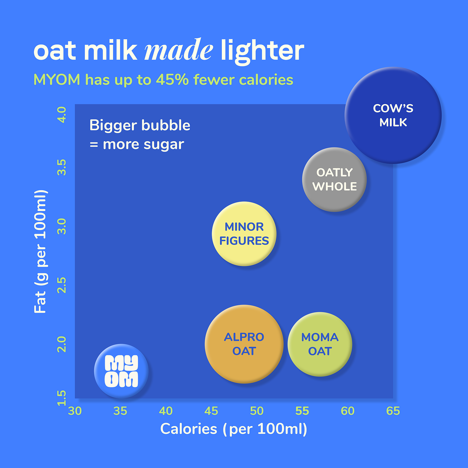 We think so, MYOM is the only oat milk in the UK to win a Great Taste 2-Star Award. It's lower in sugar, lower in fat, and lower in calories than Oatly Original. MYOM also has no stabilisers or dipotassium phosphate, and uses significantly less packaging.