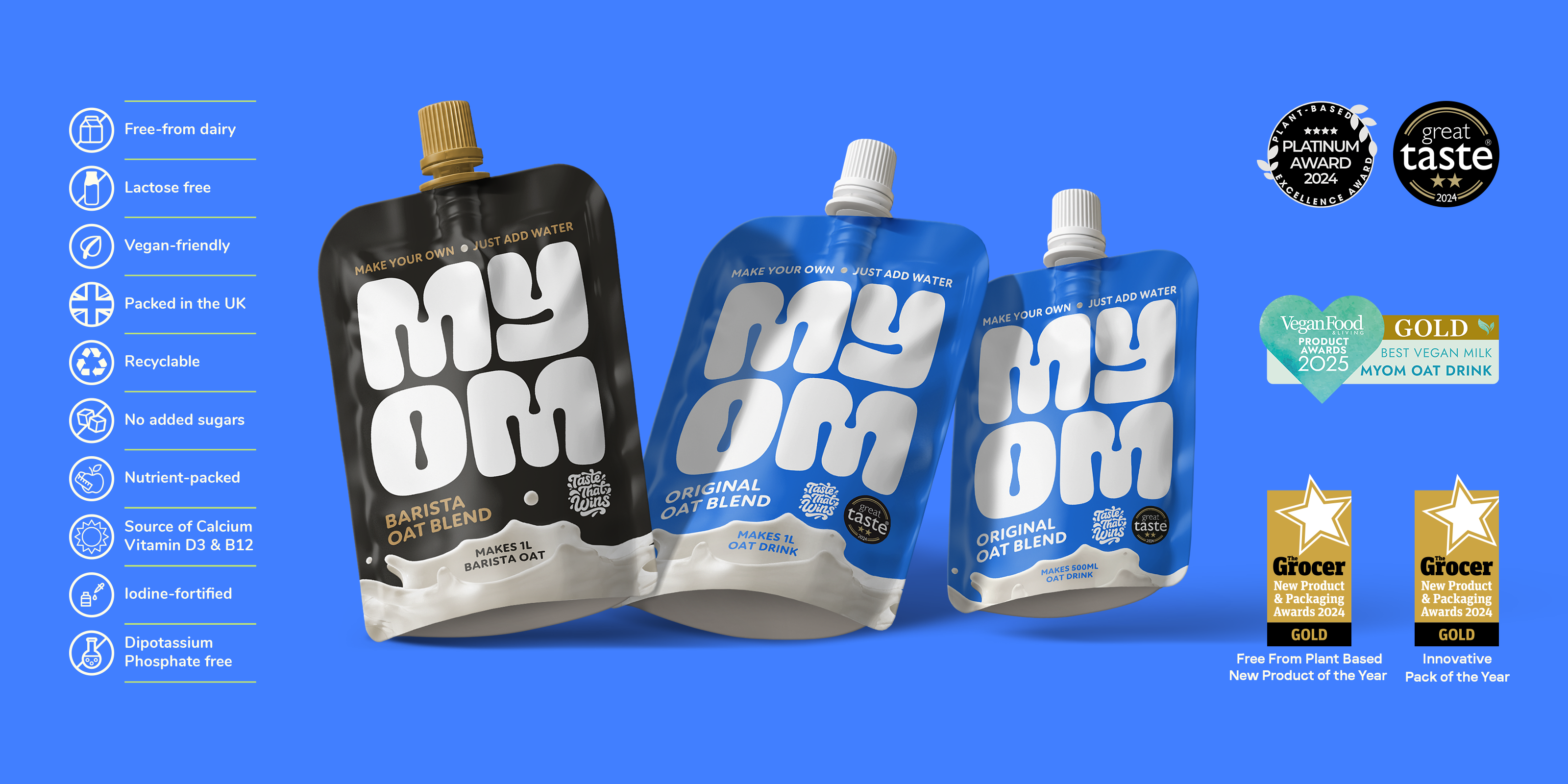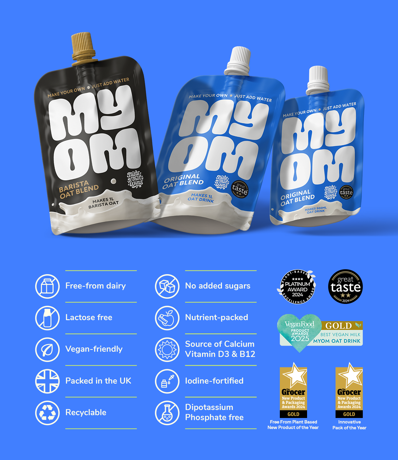MYOM is also 100% plant-based, dairy-free, and suitable for vegans. It's naturally free from lactose and soya, making it ideal for those with dietary restrictions or food intolerances.