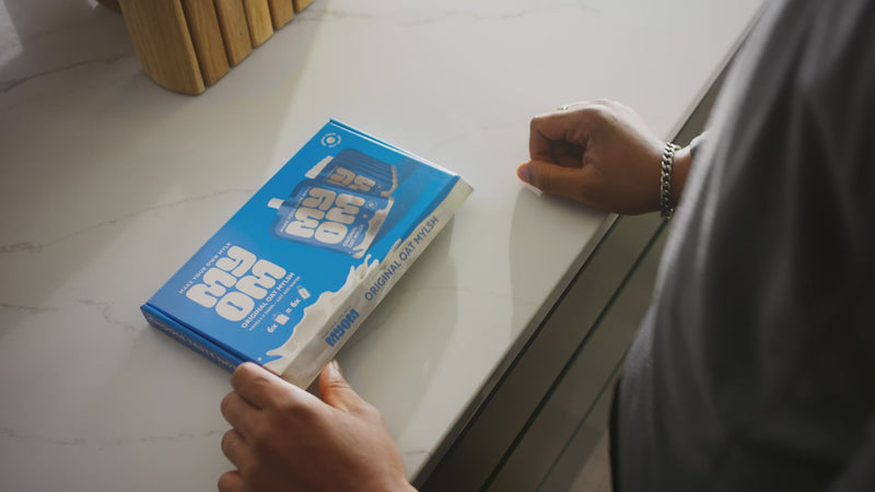 Carton oat drink is heavy because it ships water. MYOM uses significantly less packaging than carton oat drink, shipping only the great taste and nutritional benefit without the weight and volume of cartons. Our lightweight, recyclable pouches have a significantly lower carbon footprint than traditional cartons. MYOM oat drink pouches take up far less space than cartons and can be stored for up to a year before using.