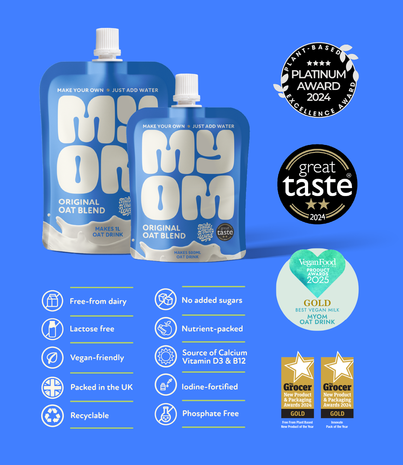 MYOM contains no artificial colours, flavours, sweeteners or preservatives. It’s also nut-free, soya-free, lactose-free and non-GMO, making it suitable for a wide range of dietary needs.